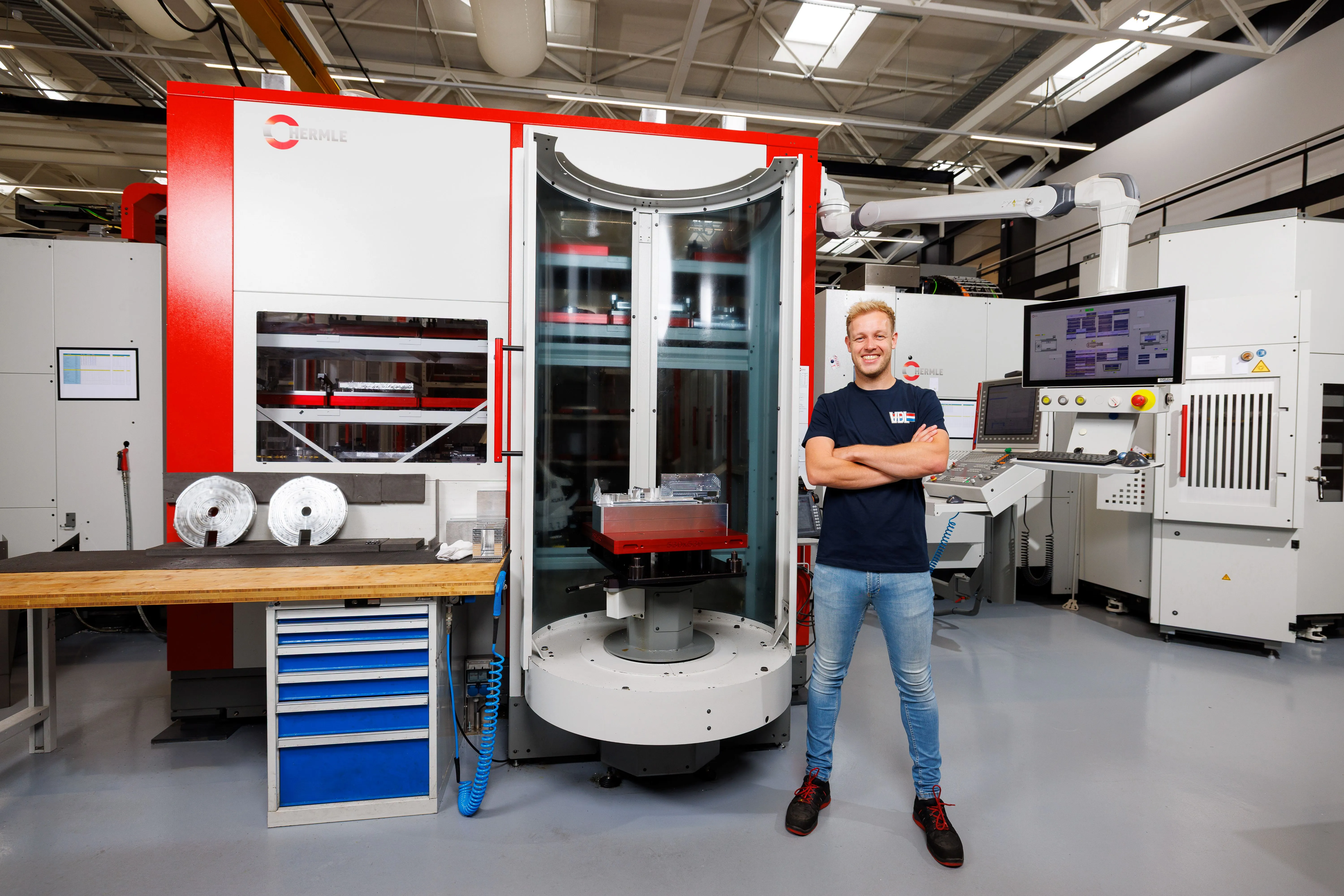 Nu werkt Ruben al zo’n tien jaar in de groep met Hermle-machines. Ruben: “We produceren verschillende producten in dezelfde lijn. Daarbij richt ik me onder andere op het optimaliseren van het productieproces, met als doel zoveel mogelijk onbemande uren te realiseren. Planning en toolmanagement zijn dan ook belangrijke onderdelen van zijn werk.”